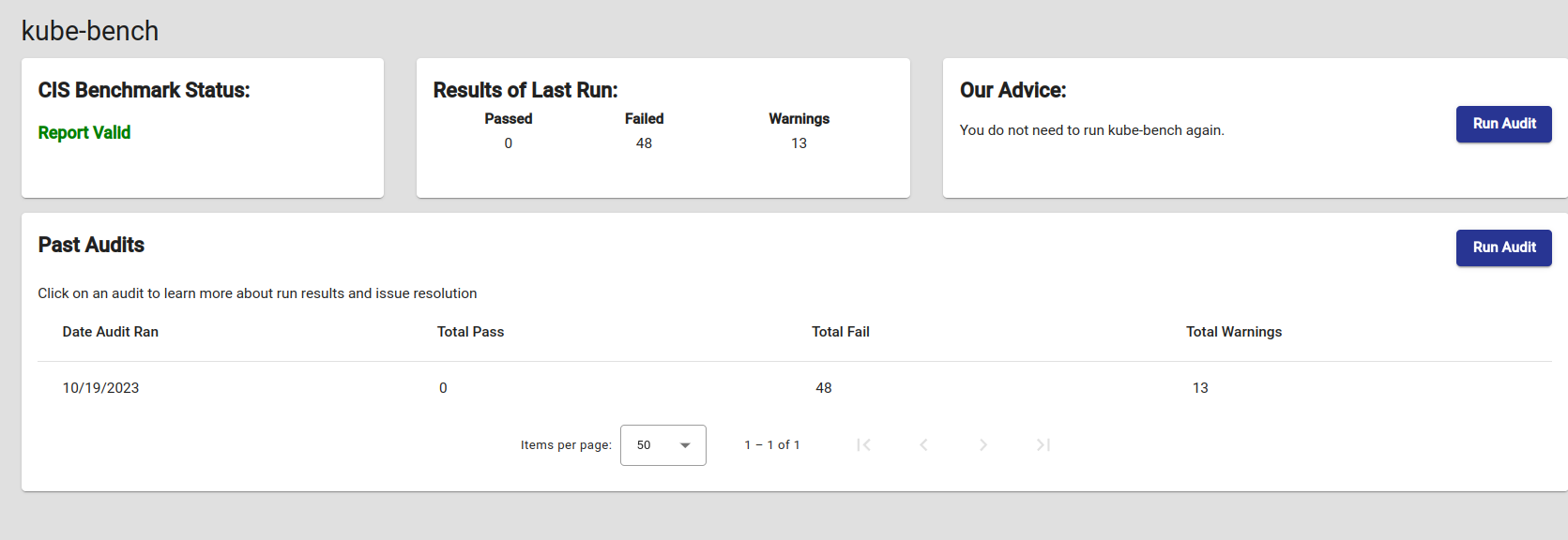- Kube-bench kube-bench is a tool that checks whether Kubernetes is deployed securely by running the checks documented in the CIS Kubernetes Benchmark.