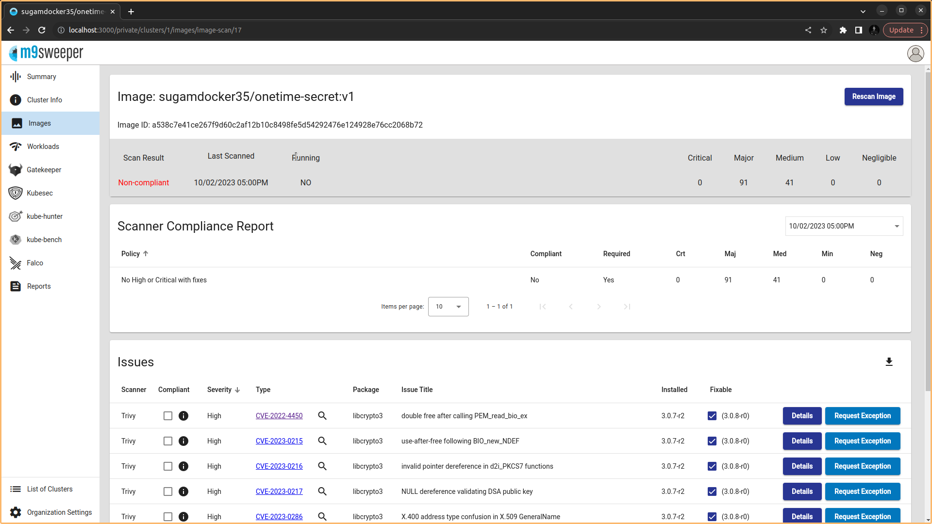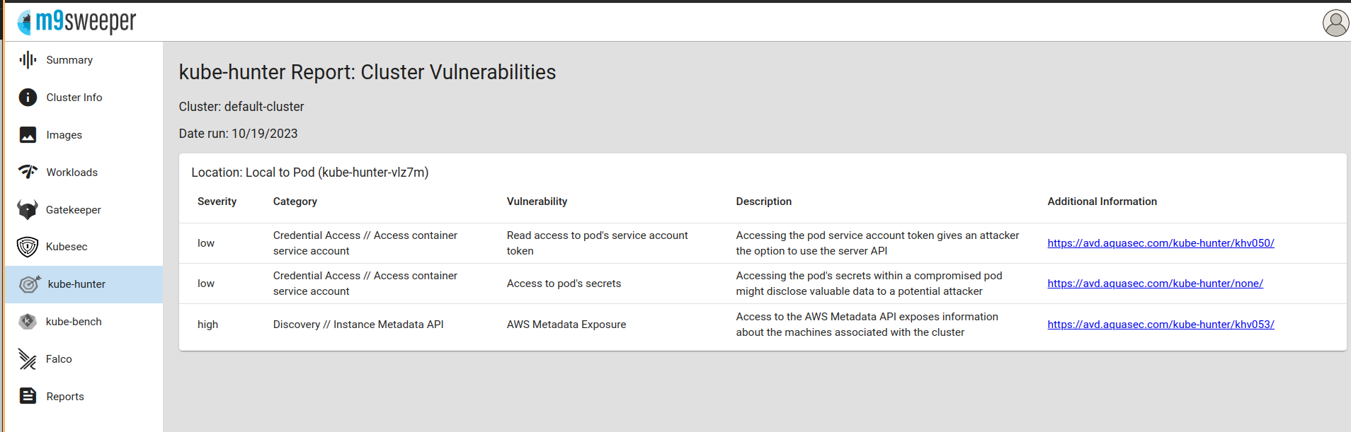 M9sweeper makes securing a cluster easy with: