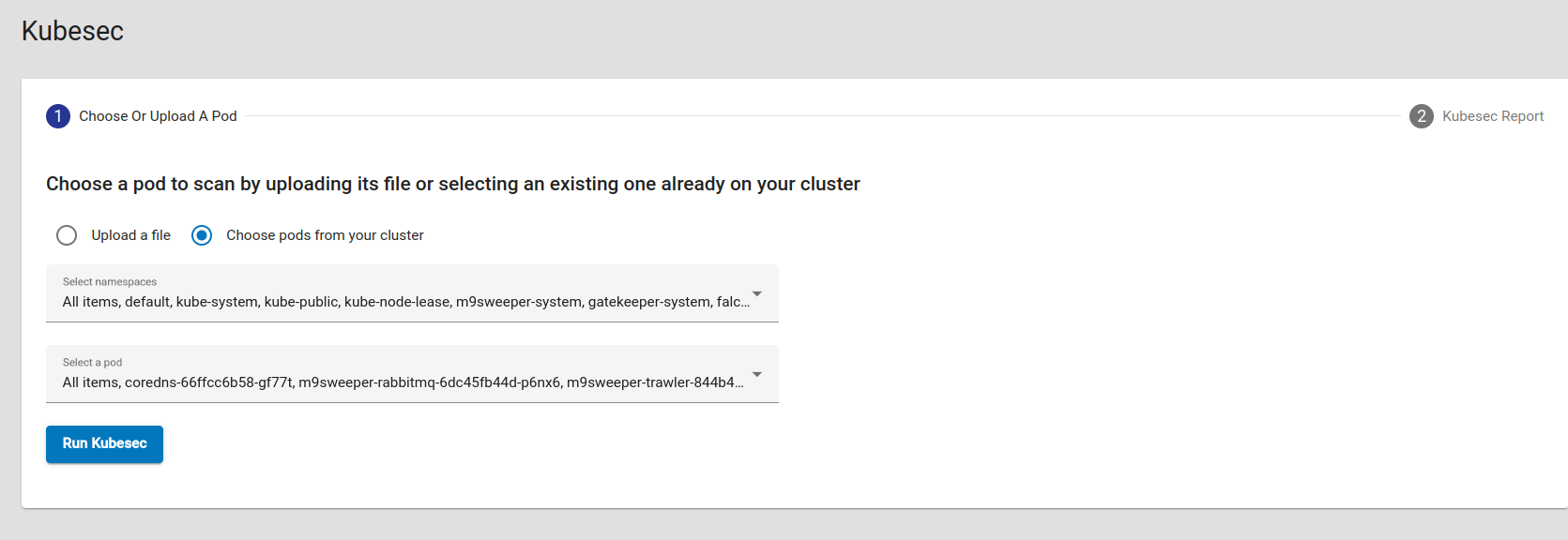Fig: Choose the pods from cluster or file