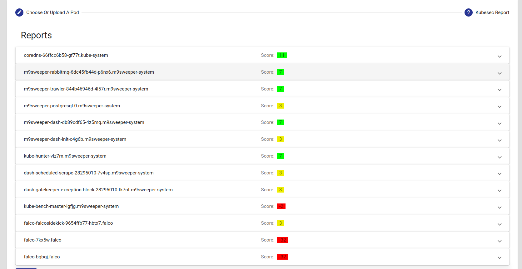 Deployment Coachings Ensure deployments are properly secured by reviewing your application deployments with kubesec. Ratings and summary reports are available in a simple graphical user interface.