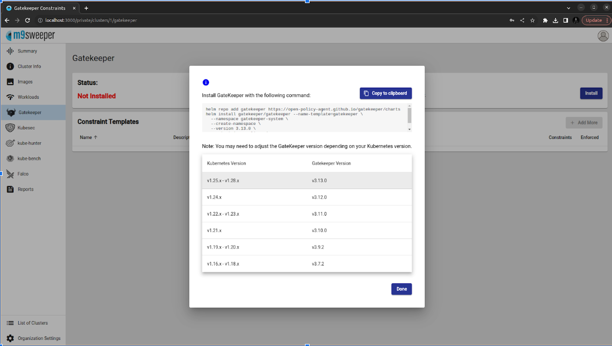 Fig: Install the Gatekeeper Note (Gatekeeper for workloads else internal server error)