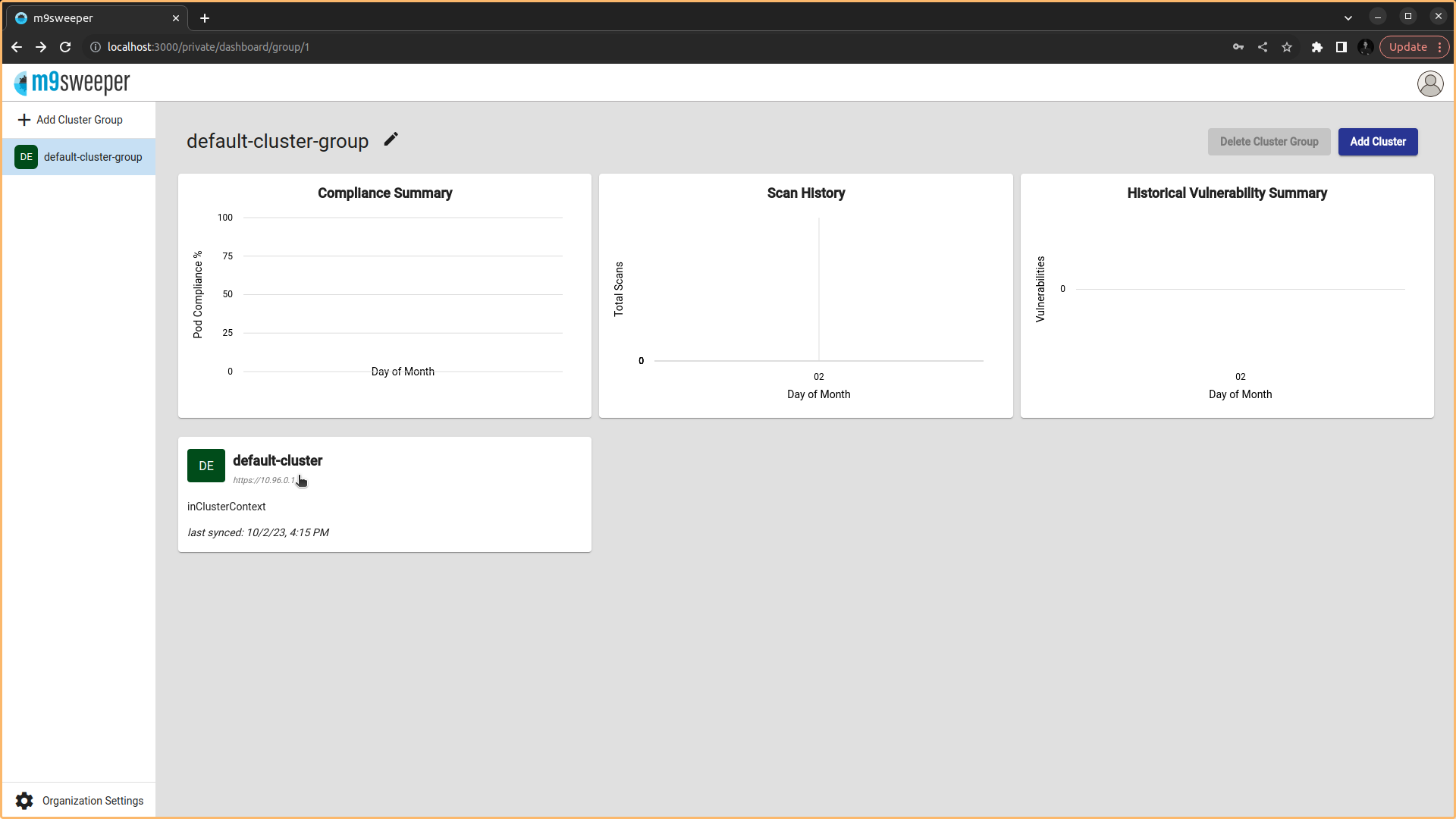 Fig: M9Sweeper Dashboard - Choose the cluster for security checkup